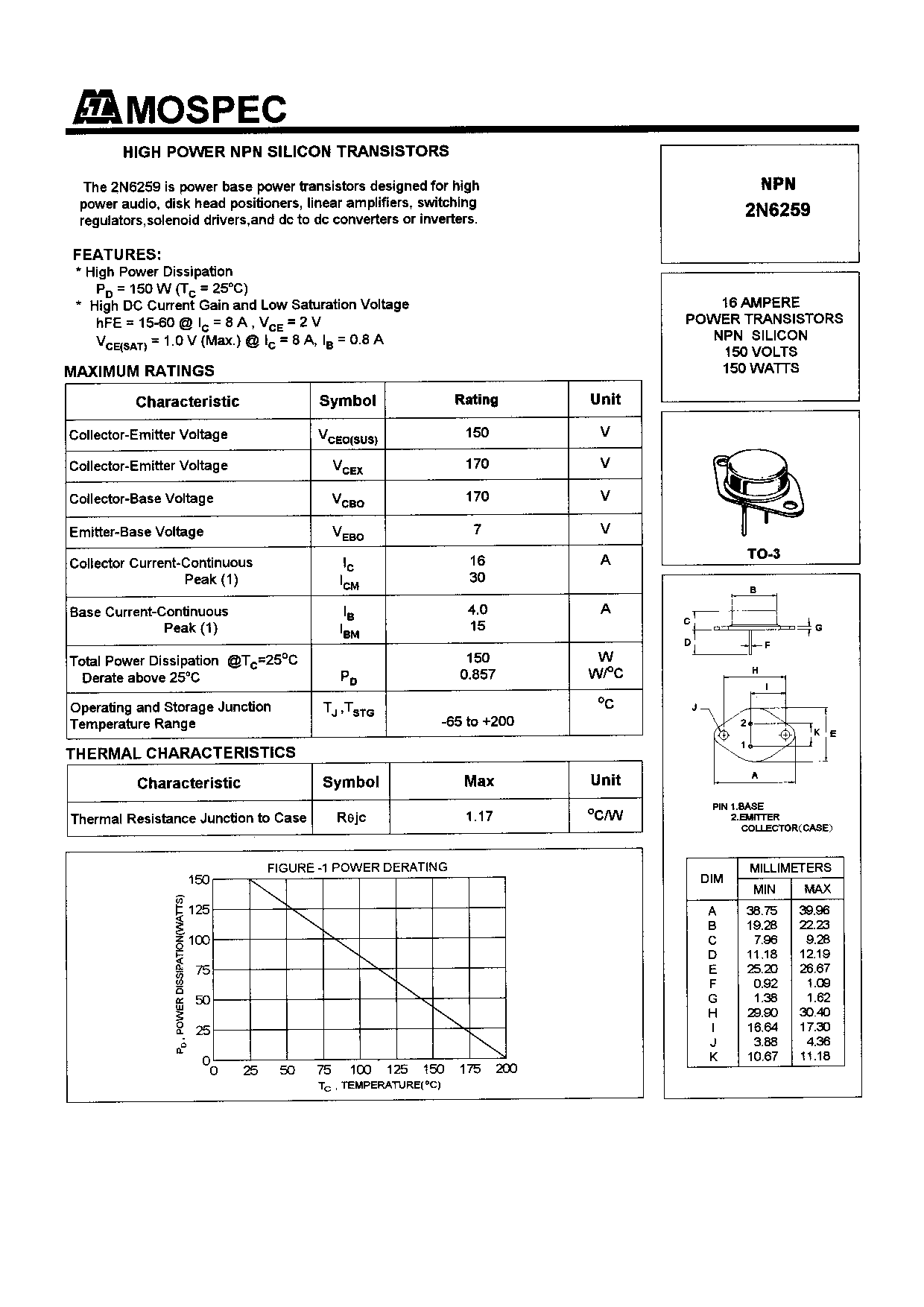 2n6259 最低价格3.20元 ,最高价格30.00元 ,平均价格 17.37元